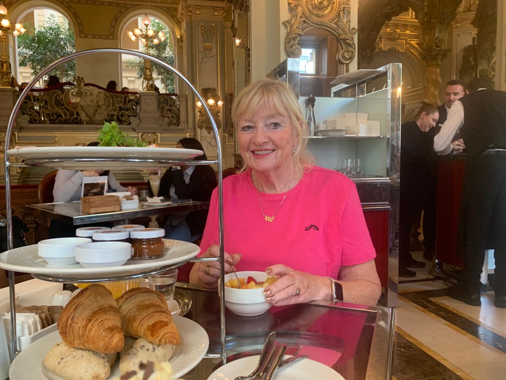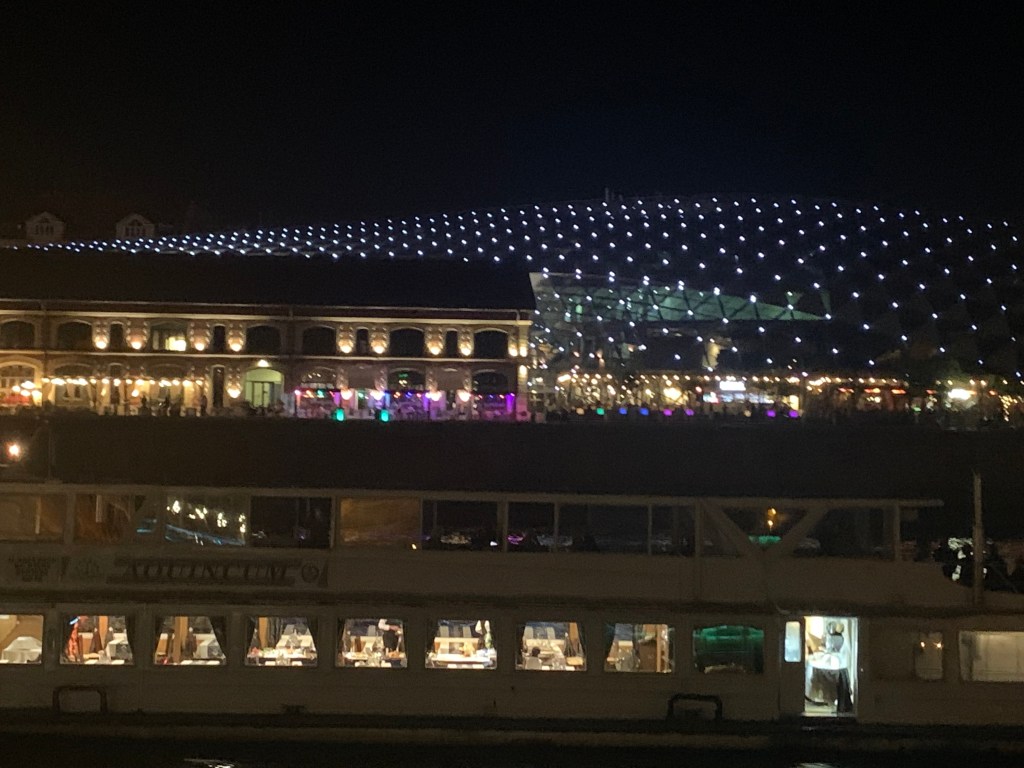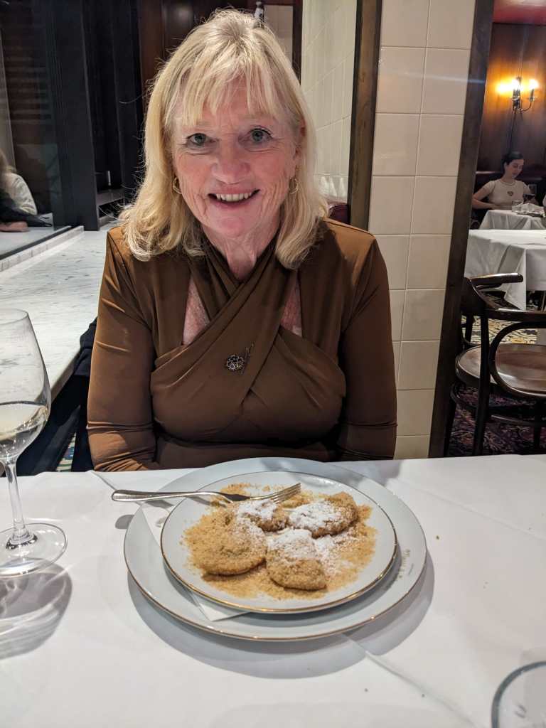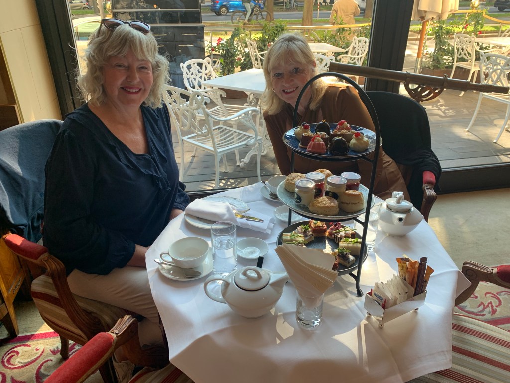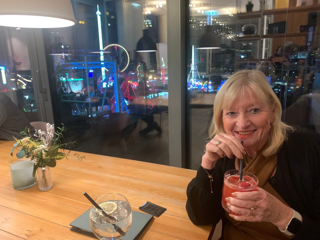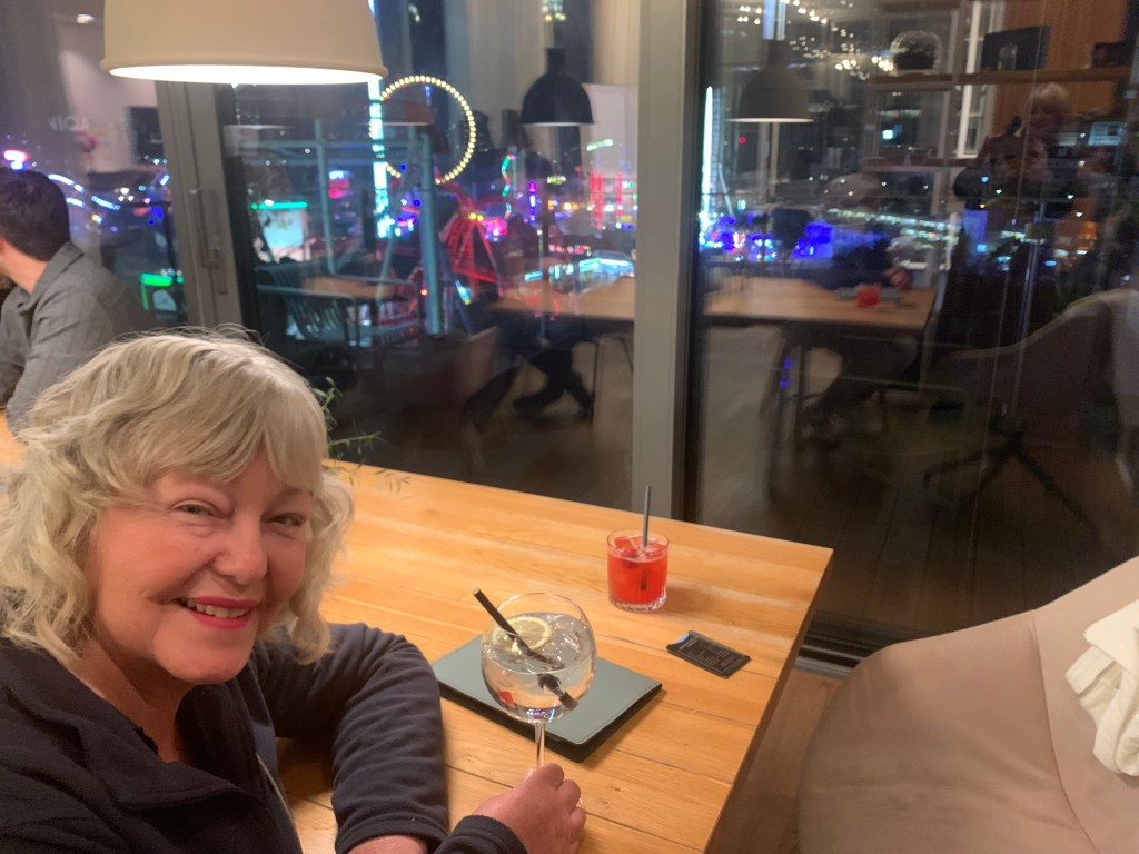 We arrived before sunset, so it was great to see the change as night descended and the lights began to twinkle. They twinkled even more after a couple of rather strong spiced Margeritas and we then headed for our dinner venue, ‘The Hard Days Night Hotel.’ Full of great photos and Beatles memorabilia and of course Beatles background music, we joined a rather full restaurant. Gabs was recognized by one of the diners who proved to be on a coach trip from Weymouth and we discovered all the diners were on a trip with Bluebird coaches; one of our local coach companies. No escaping Weymouth for these Budmouth wenches!
