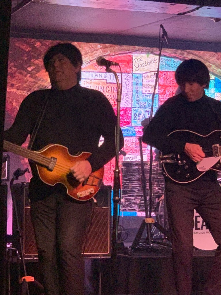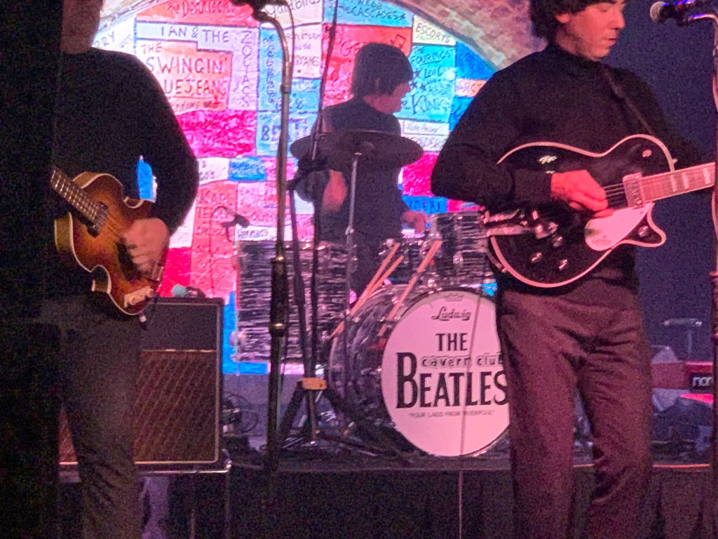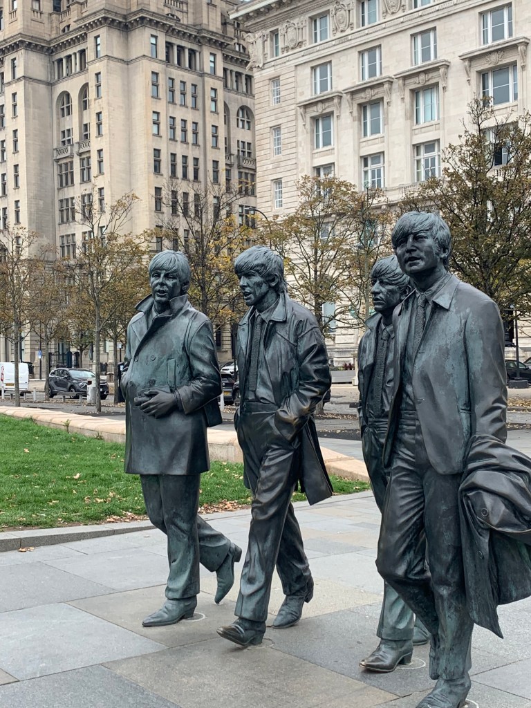 For those of us who remember the 1970’s a popular sitcom about two single girls living in Liverpool was called the ‘Liver Birds,’ I learned that this name was taken from the two birds on top of the Royal Liver building shown in the photos. They face away from each other and it is said that if they ever leave, Liverpool will be doomed;somewhat unlikely as they are statues! After this busy afternoon we headed back for a brief rest before our evening booked at the Cavern club.