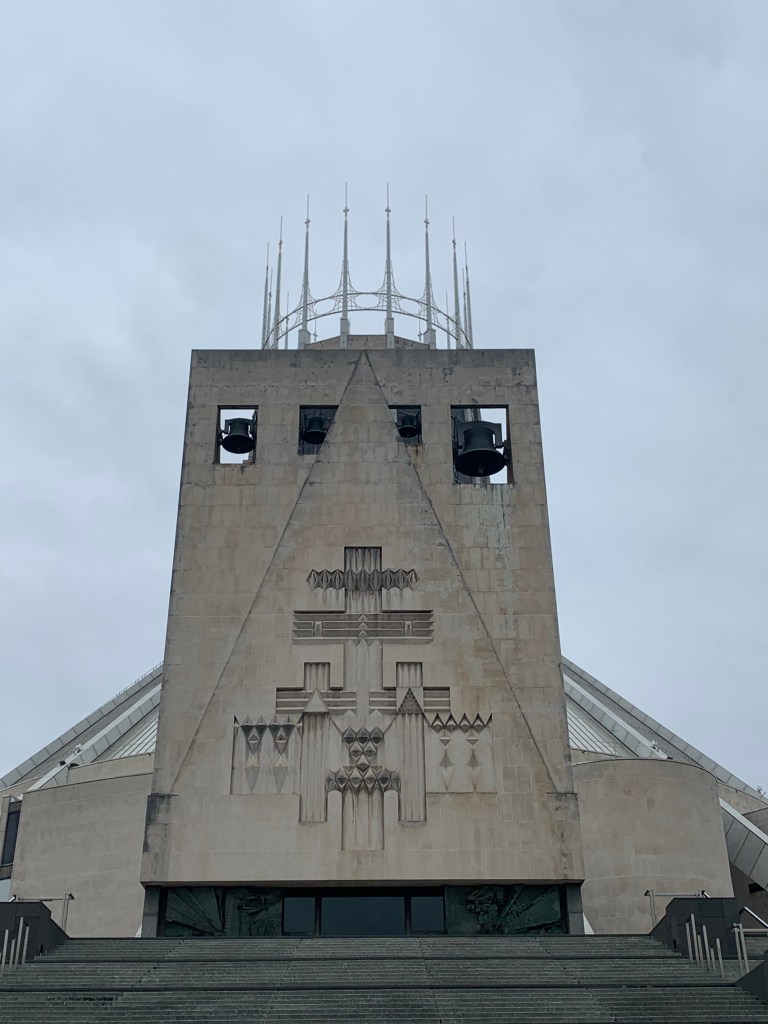 Another hearty breakfast later and we headed to the Catholic cathedral affectionately known as ‘Paddy’s Wigwam;’ 75 percent of Liverpudlians have Irish heritage. The building was completed in 1967 and was very different to all the cathedrals I’d recently visited in Europe. Inside the stained glass could not fail to impress even on a cloudy day.